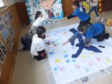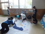 4年1組がモンテディオ山形10月19日ホーム戦に向けて「にじいろ応援大作戦」に参加しました。「山」「形」「一」「丸」の「丸」の字の大きな横断幕に勝利への願いを込めて手形をつけました。メガホンに応援メッセージも書きました。「勝ってほしい!」という気持ちが届くように、真剣に言葉を考えていました。