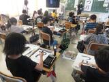 3年2組が習字の学習で「つり」の2文字に挑戦しました。「丸みをつけて」「名前までていねいに」という2つのめあてを意識して、慎重に筆を運びました。自信のある作品に仕上がったようです。