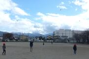 1年1組に続いて2組が凧作りに挑戦しました。今日は今年初めて雪が積もり、グラウンドはびちゃびちゃで寒かったのですが、長靴で元気に走り回り、凧あげにも挑戦しました。なかなかうまく揚げるのは難しい子供もいましたが、高く揚がった瞬間は歓声が上がっていました。