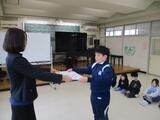 6時間目に、天童三中の2年生4名が、6年生にオリエンテーションをするために来校してくださいました。中学校生活について、分かりやすく説明してくれたり、校歌を歌って紹介してくれたりしました。最後の質問コーナーでは、子供たちからたくさん質問が出されて、一つ一つに丁寧に答えてくれました。優しく明るい先輩方に「安心して入学してください。」と言ってもらい、期待が大きく膨らんだようでした。