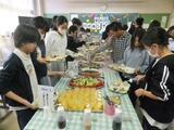 6年生はバイキング給食でした。6年間で1度だけの特別給食です。4時間目に栄養士の先生から5大栄養素をバランスよく食べなければならない理由について教えていただきました。その後教室に並べられた数々のメニューからバランスを考えて自分で盛り付けておいしくいただきました。