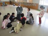1年生が地域ボランティアの方と昔遊びに取り組みました。めんこ、こままわし、凧あげ、ハンカチ落としなどを一緒にして、とても楽しい時間を過ごすことができました。