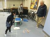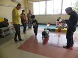 3、4校時に1年生が地域ボランティアの皆さんをお招きして、昔遊びをしたり、今年お世話になった感謝の気持ちを伝えたりする交流会を開きました。11人のボランティアの方が来てくださって、笑顔いっぱいの時間を過ごしました。